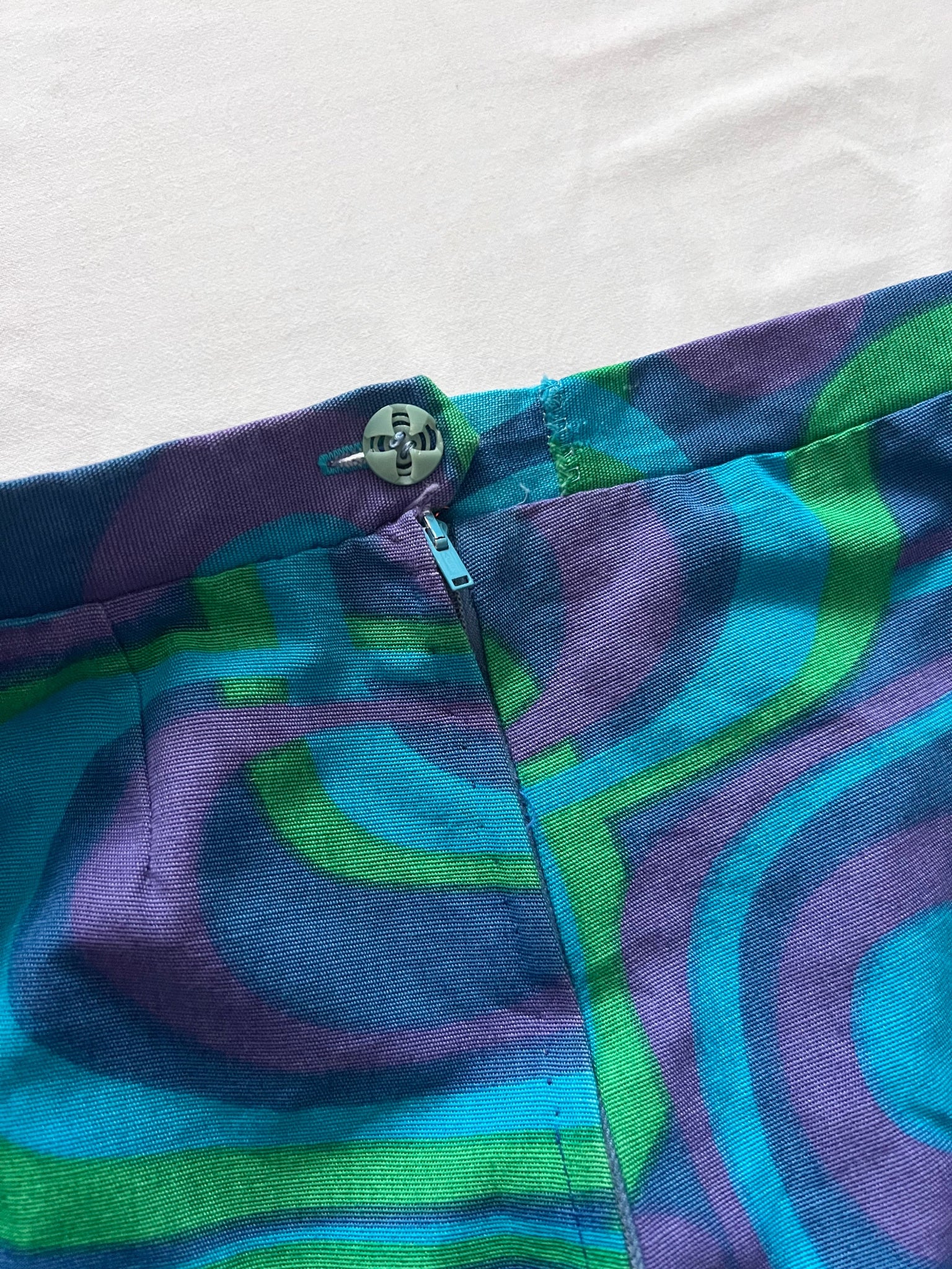 60s blue geometric shirt and skirt set, Size S