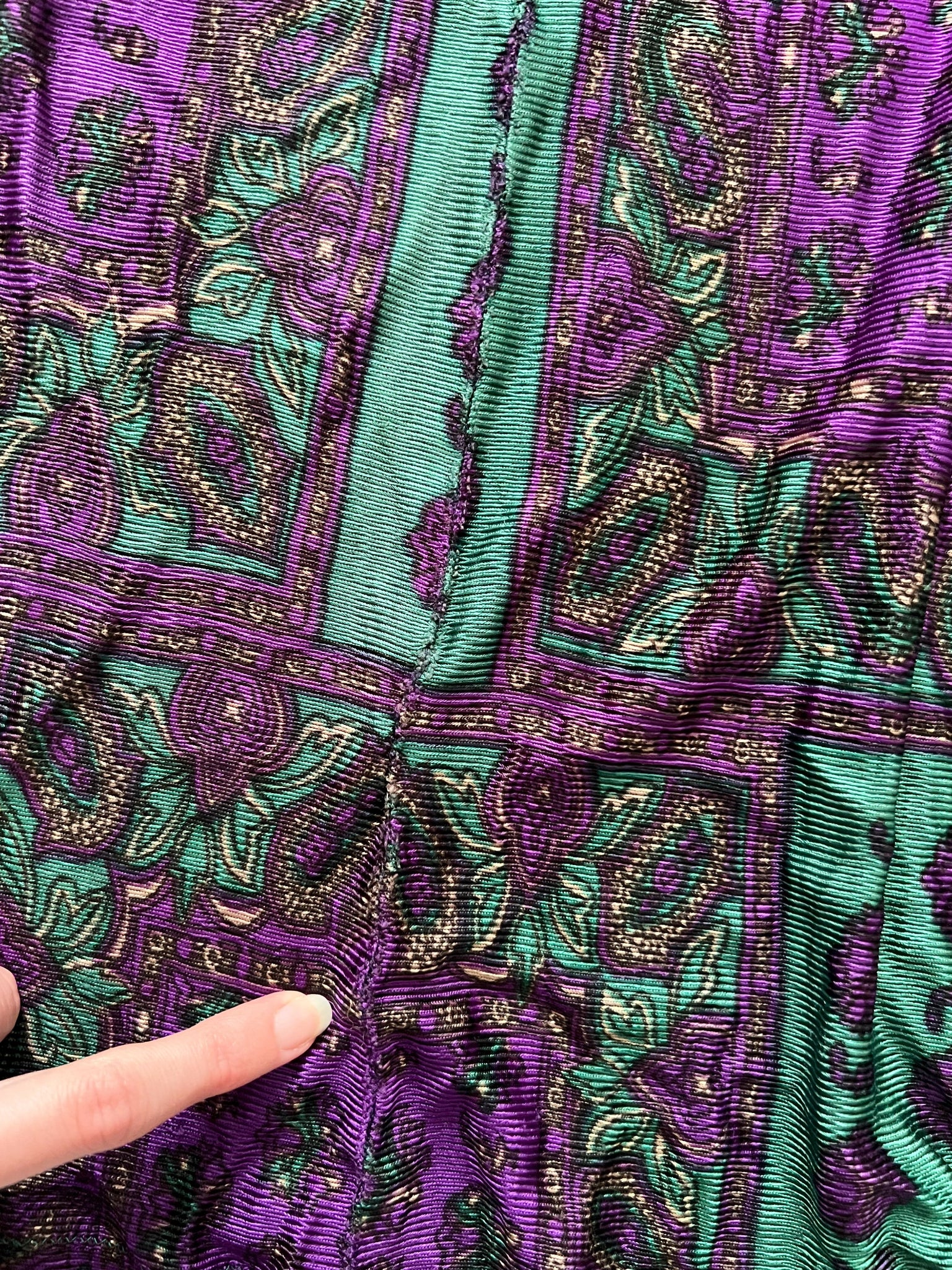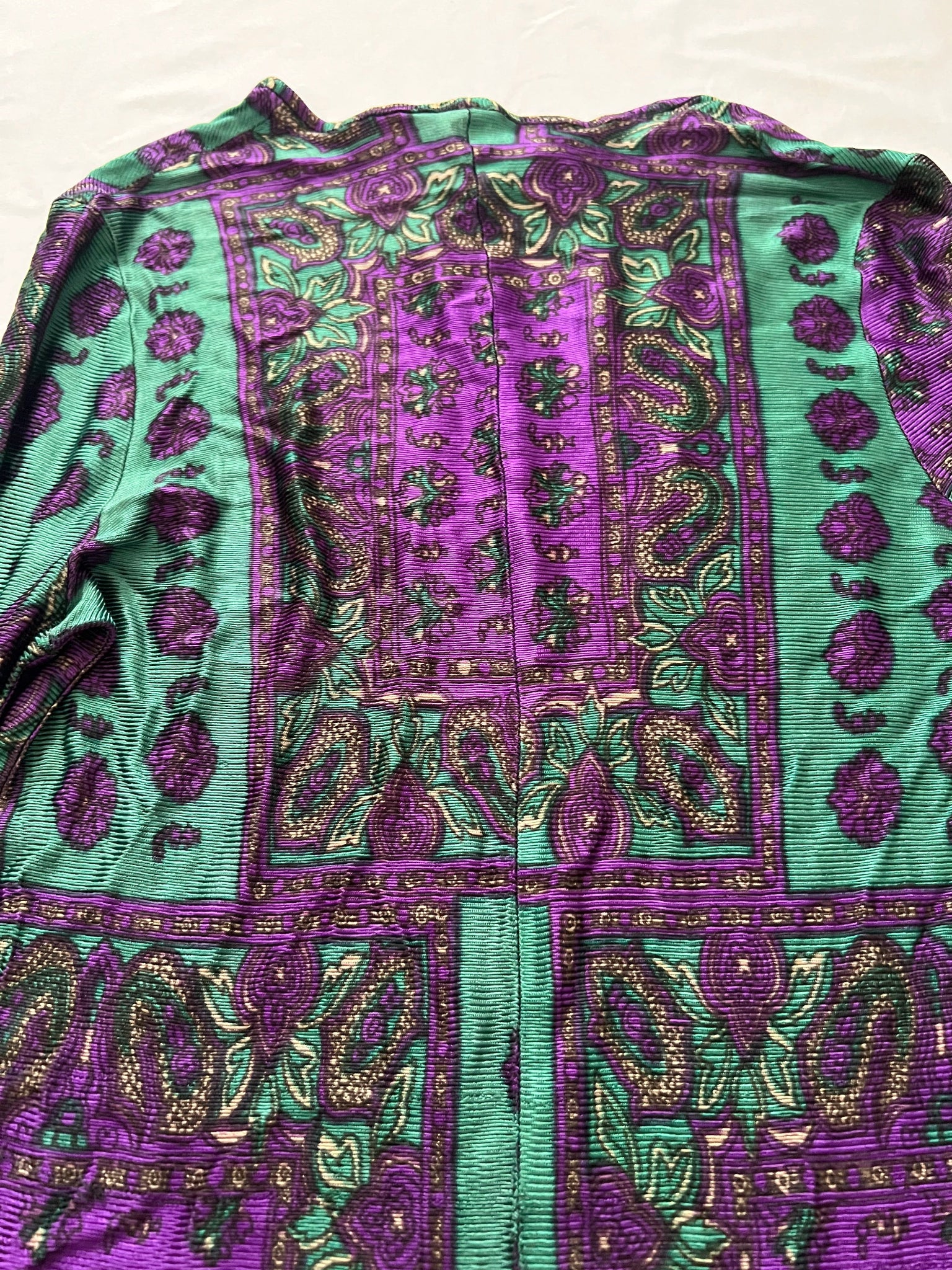 60s green and purple paisley top, Size XS