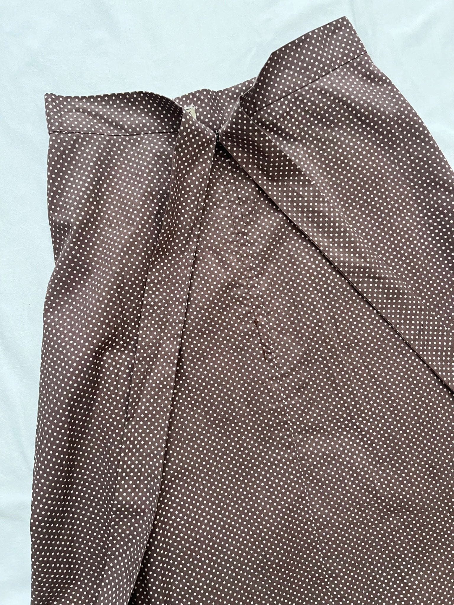 70s Pia & Paula brown and white polka dot maxi skirt, Size XS