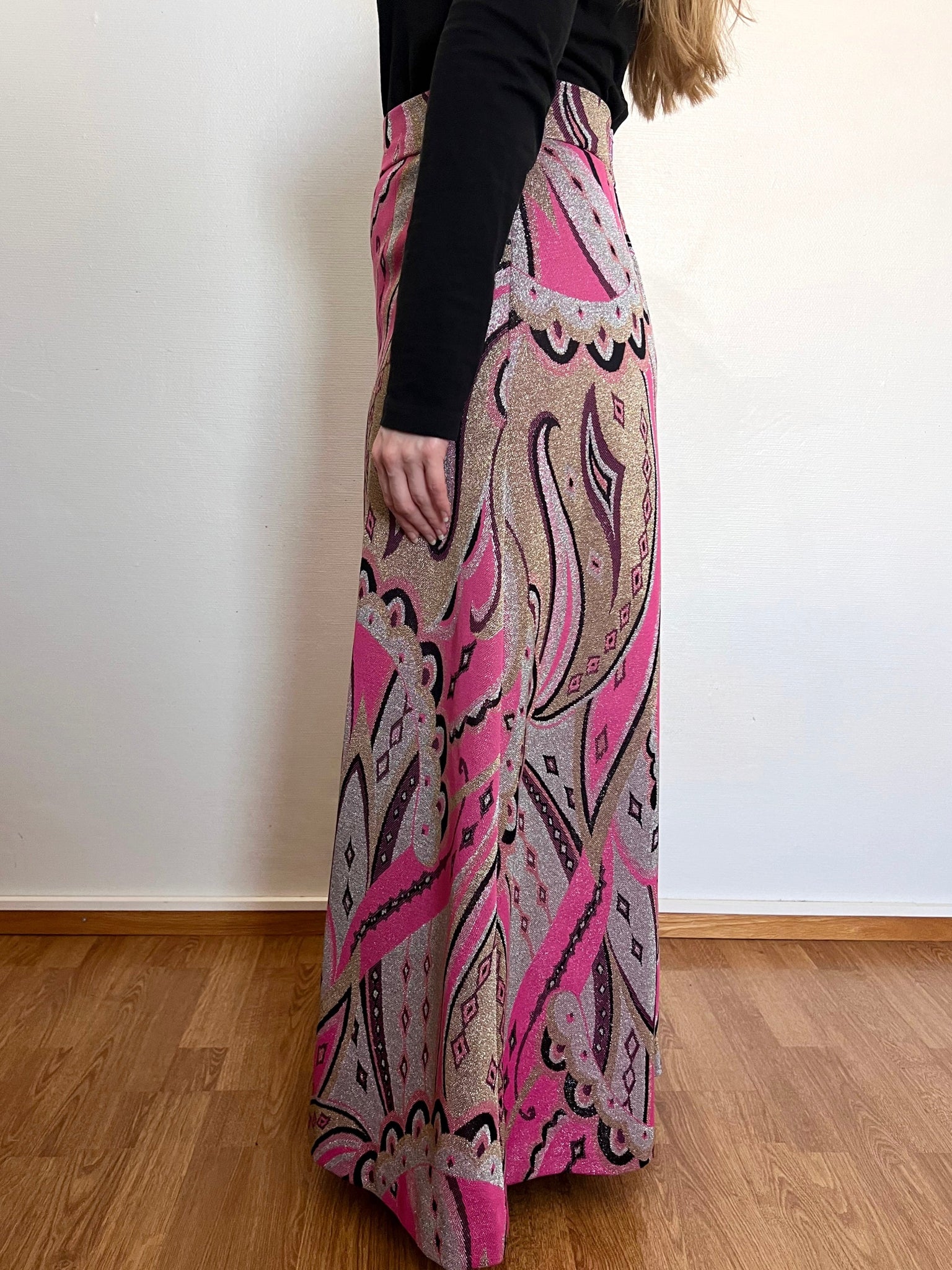 70s pink glittery maxi skirt, Size S