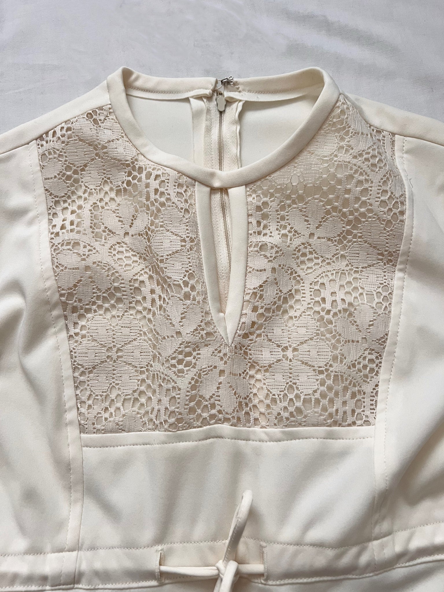 70s white lace detail dress, Size S