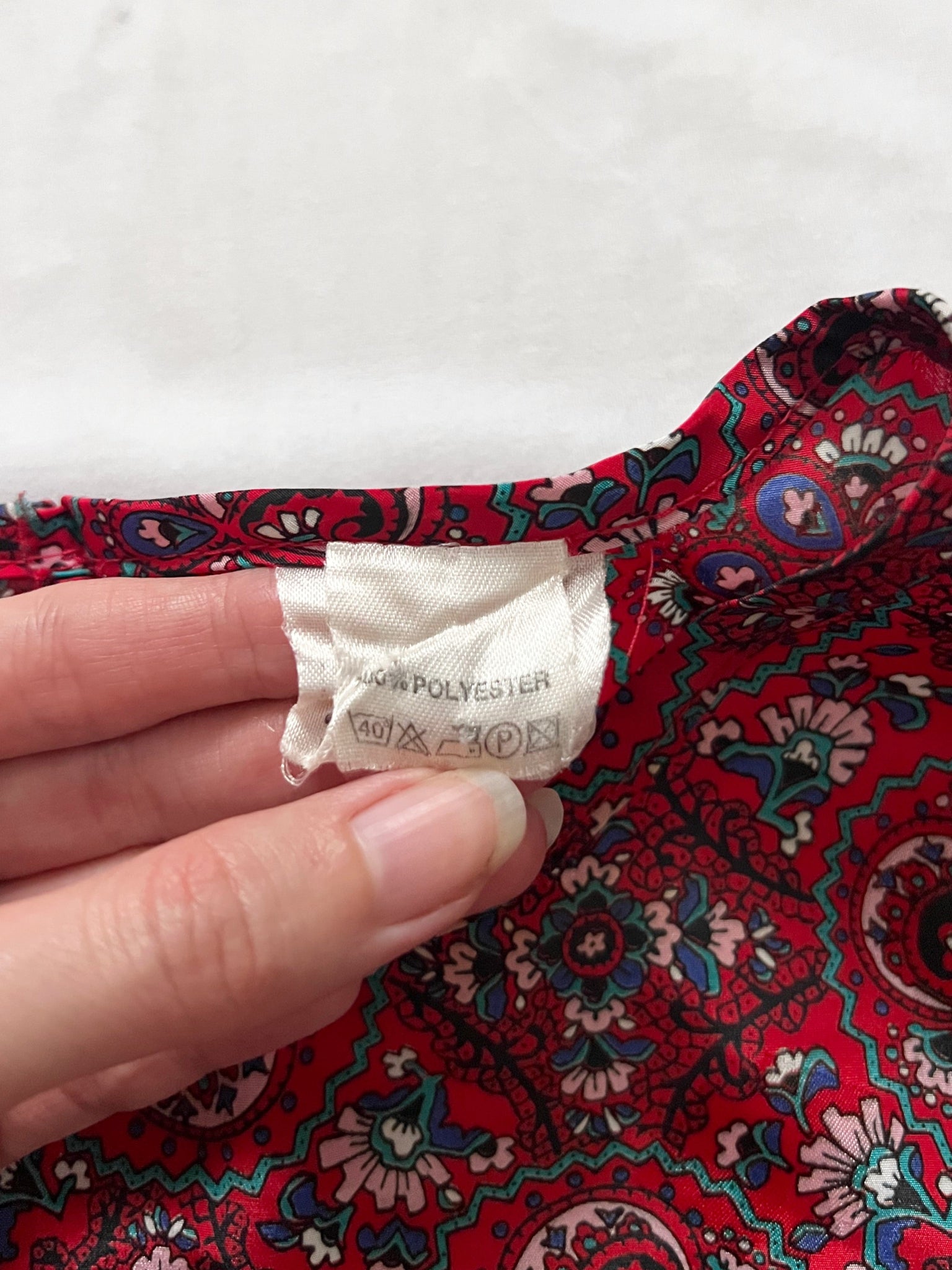 80s red ornate pattern blouse, Size XS-S